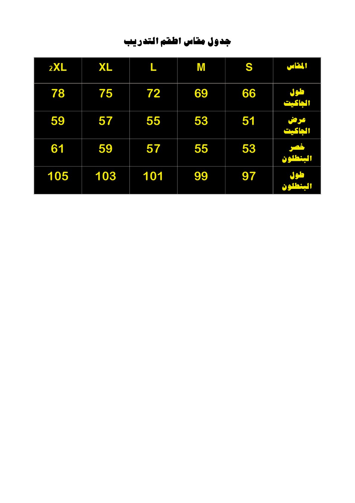 جدول قياس الاطقم